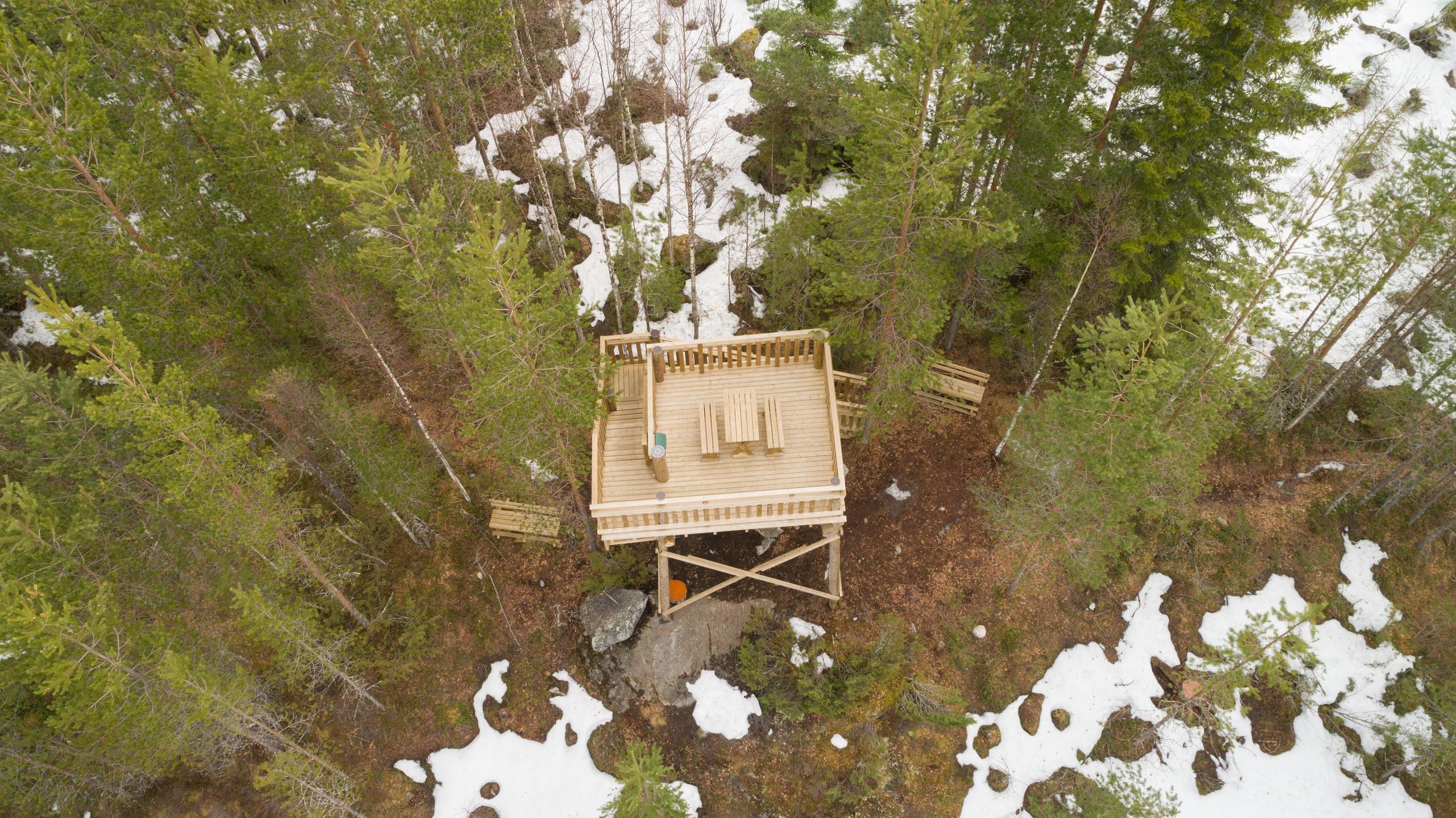 Tästä linkistä näkyy koko polku. Polku on niin selvästi merkitty, ettei siltä pääse eksymään. Myös talvella pääsee polulle ja näköalatornille.